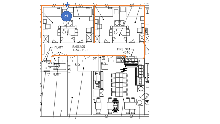 The next step is to start tracing the walls to capture what the model cares about as far as structural details. In this case, while the drawings show two cabins and a bathroom, for virtually every other aspect, these three spaces are one space for fire, flood, and damage control purposes: